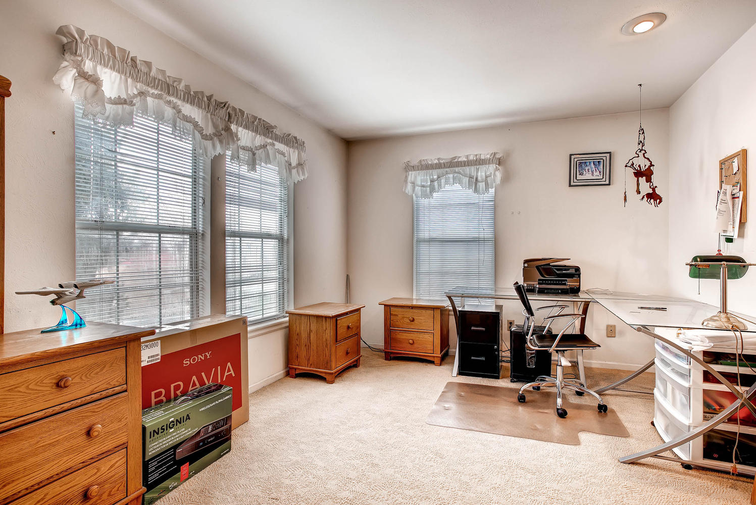 Located in the heart of Columbine West on nearly 1/5 of an acre. The eat-in kitchen includes slab granite counter tops and newer slate finished appliances. The family room is open and airy with vaulted ceilings, large windows for natural light, a wet bar, plus a gas-burning fireplace wonderful for the winter months. The formal living room with bay window and formal dining room with a vaulted ceiling are great for entertaining friends and family. The upper floor includes the master suite with a 3/4 bath and walk in closet, two additional spacious bedrooms and a full bath. The partially finished basement is wired for surround sound and offers extra storage. The large garage has been updated with epoxy coated floors and wall organizers...