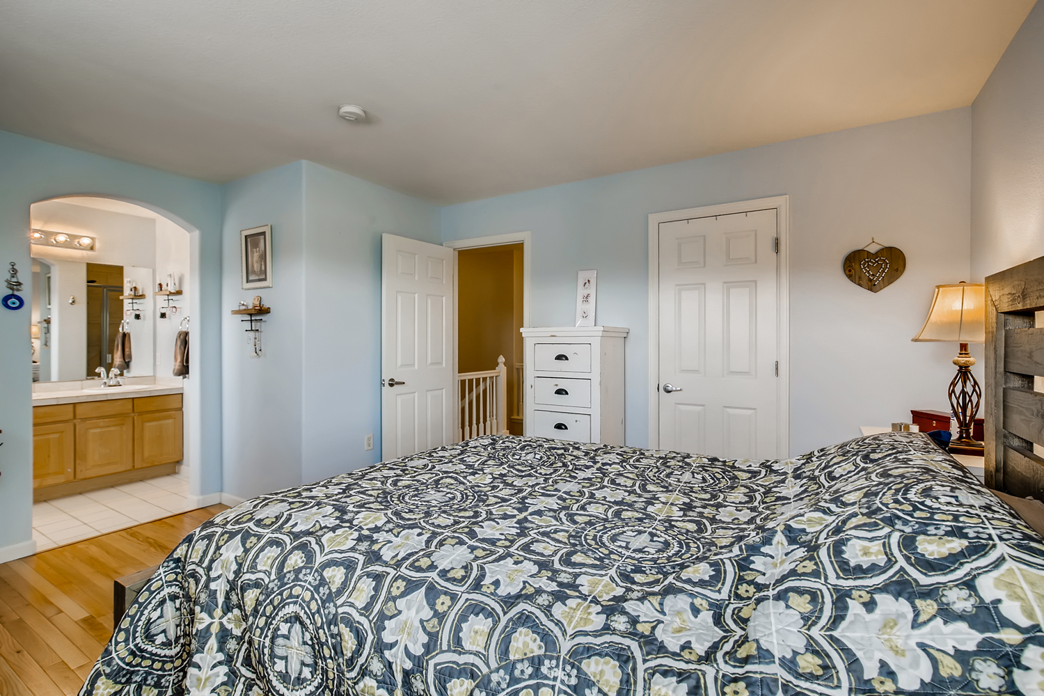 Sold for $80k+ list price. Fantastic corner unit 3 bedroom, 3 bath townhome in the Red Hawk neighborhood. Upon entering the front door off the covered wraparound porch, you are greeted with high ceilings, hardwood floors and large plantation shuttered windows that bathe the main floor in natural light. Step into the living room with heated tile floors and a gas fireplace providing the perfect place to cozy up on a cool Colorado evening. The kitchen features stainless steel appliances, granite countertops and plenty of cabinets. Off the kitchen is a large laundry room with additional storage. The second floor features the primary bedroom with a five-piece bath and a walk-in-closet. Plus two additional bedrooms with hardwood floors throughout. An additional oversized storage room/crawl space under the living area (with heat/cooling vents) is accessed through the two-car attached garage. This townhome is move in ready. Enjoy carefree living in a desirable neighborhood with low HOA dues. Conveniently located minutes from the I-25 corridor, downtown Castle Rock, Miller Activity Complex, Rock Park Loop Trail, and Red Hawk Ridge Golf Course.